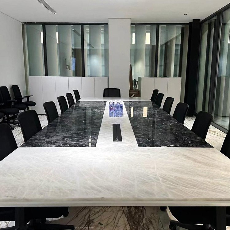 سطح عمل مكتب فاخر مصمم حسب الطلب من الكوارتزيت الأسود كالاكاتا، مصنوع من الحجر الأسود المصقول، لوح كبير من الكوارتزيت